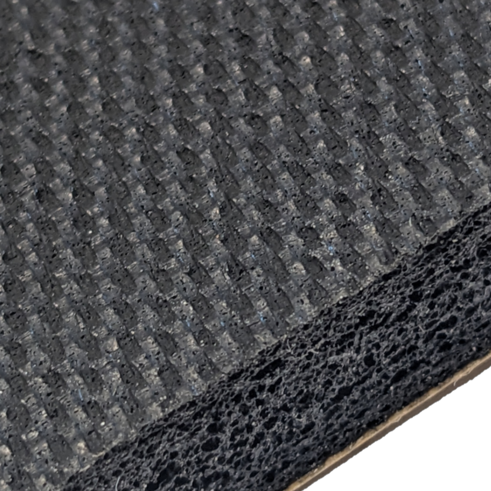 Very durable, non-slip, cushioning, textured, rubber foam with an industry leading adhesive bond. Great for most vibration, shock absorption, non-slip, and other applications.
