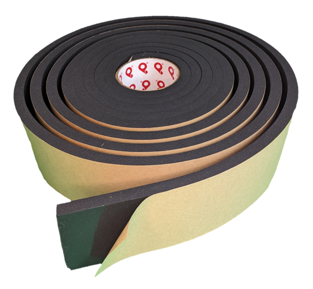 Nitrile Blend Foam Tape. Closed cell soft, black, with a smooth surface. Insulating, sound absorbing, UL, flame and smoke rated… -